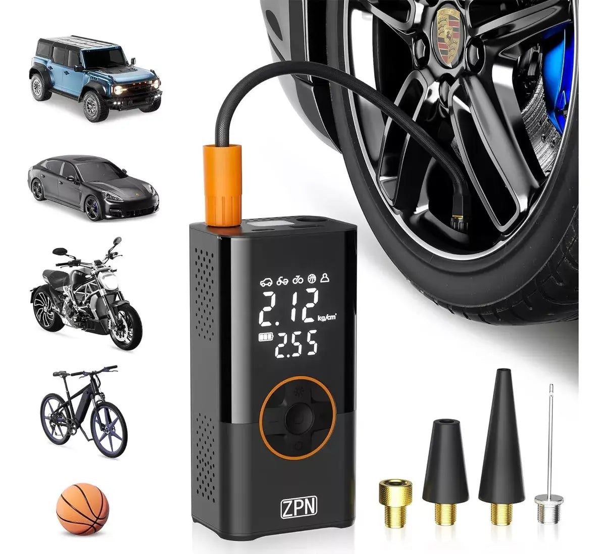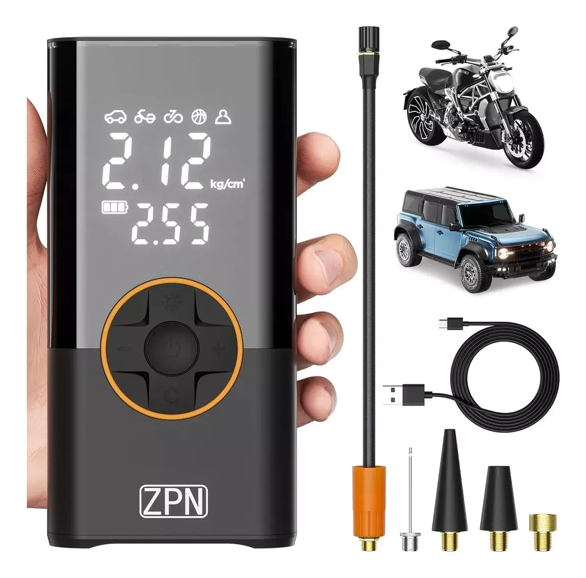 Bomba de Llantas Portátil 150 PSI – Compacta, Versátil y Recargable para Auto, Moto y Bicicleta