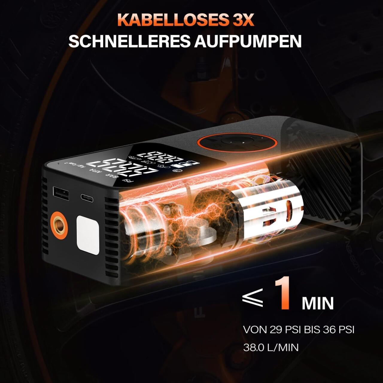• Presión Máxima de 150 PSI: Infla desde neumáticos de coche hasta ruedas de bicicleta en minutos.