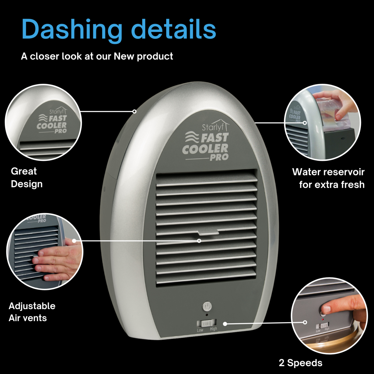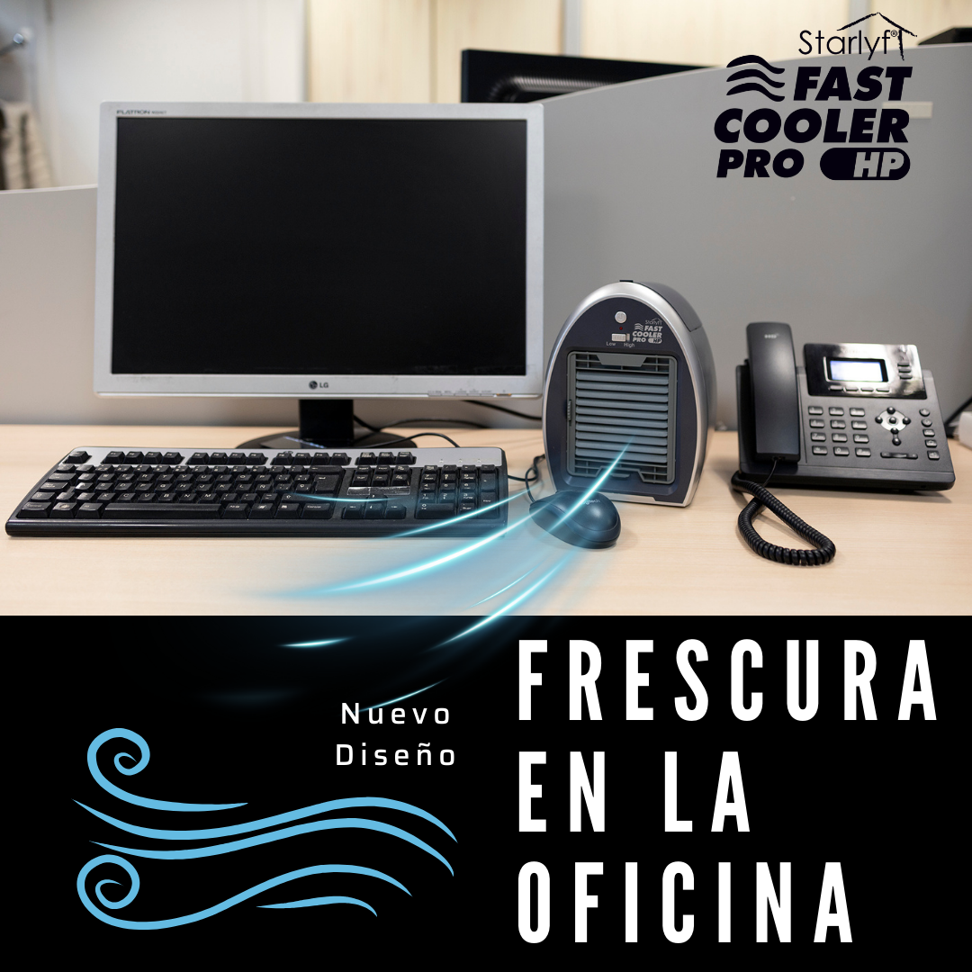 El diseño portátil y compacto del enfriador lo hace perfecto para cualquier entorno. Con unas dimensiones reducidas, puedes colocarlo fácilmente en tu escritorio, mesita de noche o cualquier espacio reducido. Además, su peso ligero facilita su transporte, permitiéndote llevarlo a cualquier lugar donde necesites un poco de frescura extra.