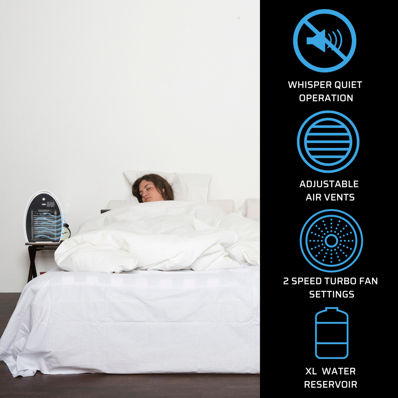 Con un consumo de energía de solo 5W, este enfriador es una opción económica y ecológica. Su diseño eficiente permite un funcionamiento continuo sin aumentar significativamente tu factura de electricidad, lo que lo convierte en una excelente alternativa a los sistemas de aire acondicionado tradicionales.
