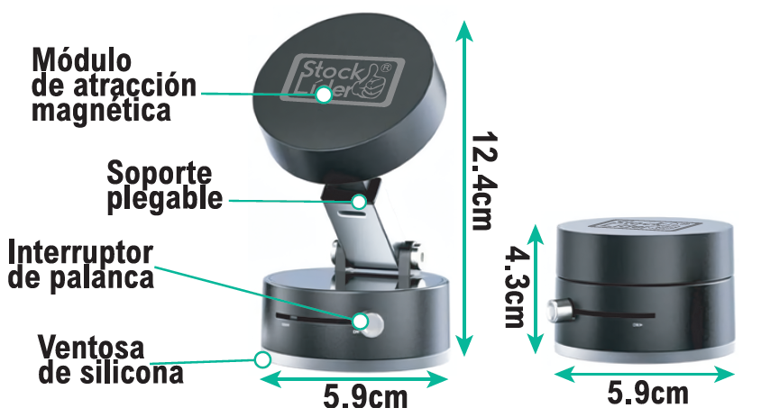 Gracias a su ventosa de silicona de alta adherencia y su interruptor de palanca, este soporte se fija de forma firme y segura a cualquier superficie plana, sin necesidad de herramientas ni adhesivos permanentes. Puedes instalarlo y retirarlo fácilmente cuando lo necesites.