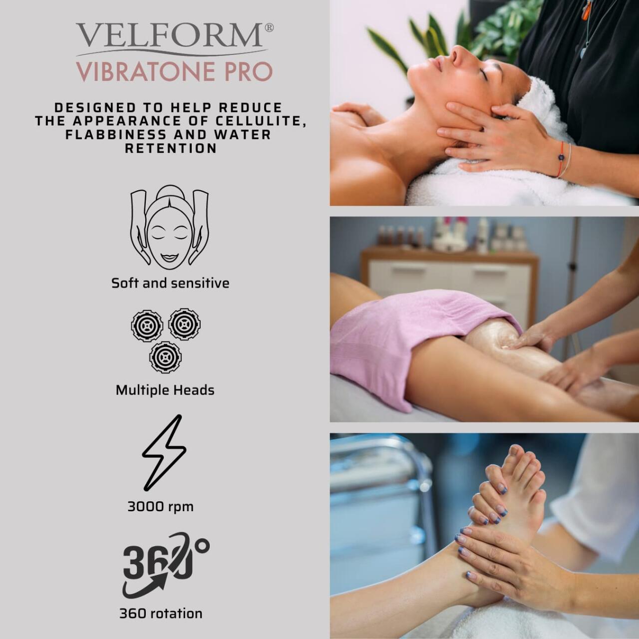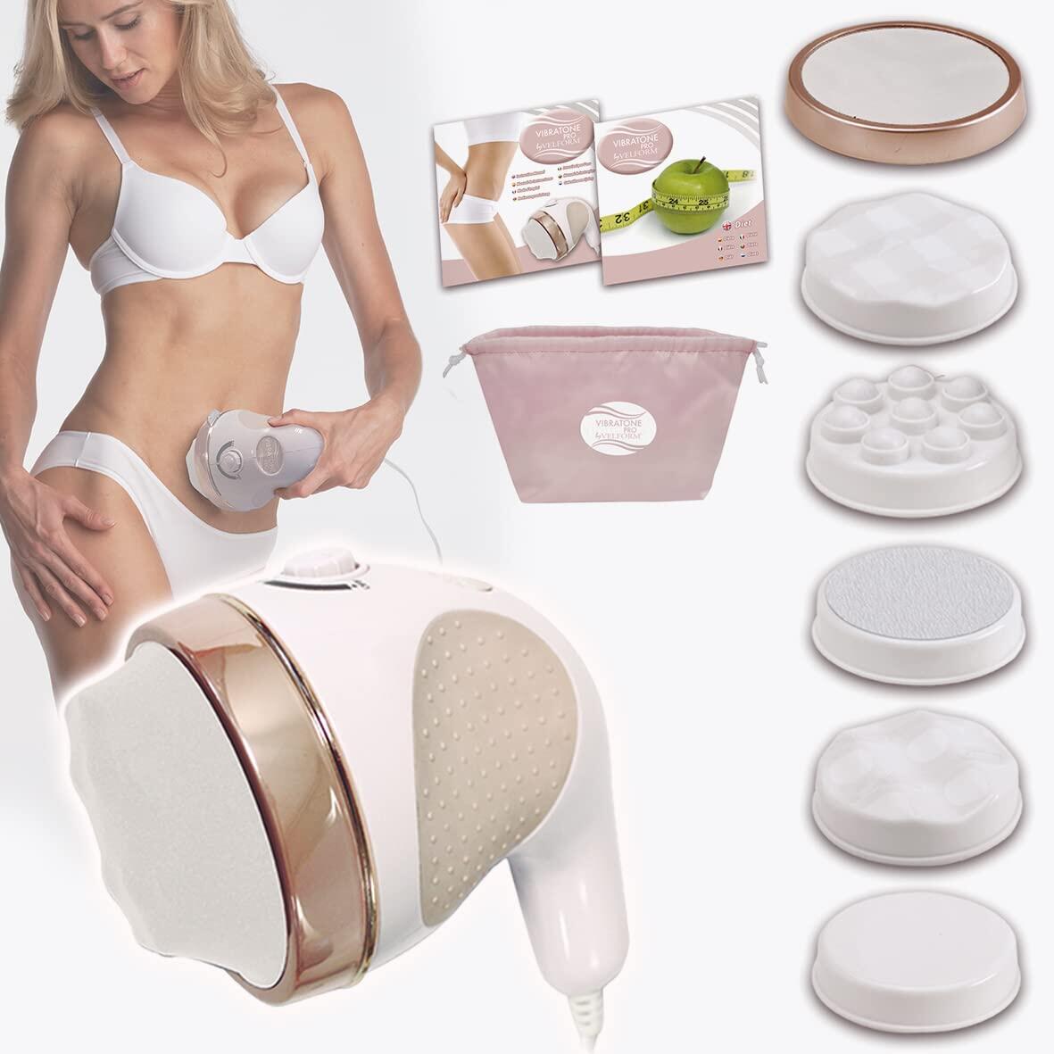 Masajeador Anticelulítico   El masajeador que te ayudará a terminar con la celulitis en las zonas más difíciles. Esculpir y contornea tu cuerpo. Piel más lisa, tersa y de apariencia joven.   Vibratone Pro crea potentes ondas vibratorias a 3000 rpm, que penetran profundamente para descomponer la celulitis persistente que se acumula en la capa de grasa debajo de la piel y la drena. Estas células grasas son expulsadas naturalmente por el cuerpo.   Este dispositivo es muy fácil de usar y ayuda a tonificar y tensar todo el cuerpo con solo 5 minutos de uso al día, proporcionando los mismos resultados que un entrenamiento específico para cada área. ¡Es la solución perfecta para problemas como la celulitis!   El efecto de vibración del Vibratone Pro contrae y relaja los músculos en el área afectada, simulando los mismos efectos que un entrenamiento específico. Como resultado del efecto de vibración, estas áreas del cuerpo se tonifican y ayudan a que la piel se vea más firme y más joven.   Ventajas:   ● Ayuda a reducir la celulitis y la grasa ● Basta con usarlo 5 minutos al día ● Piel más lisa, tersa y de apariencia joven   Incluye:  ● El Vibratone Pro massager ● Una Funda protectora ● Una Bolsa de transporte ● Un Libro de dietas ● 5 Cabezales diferentes:  ● Un cabezal liso ● Un cabezal ondulado largo ● Un cabezal ondulado corto ● Un cabezal multiusos ● Un cabezal piedra pómez   Características destacadas del producto:   ▶ INNOVADOR Vibratone Pro es el innovador sistema de masaje profesional que ayuda a tonificar y reafirmar todo el cuerpo proporcionando los mismos resultados que un entrenamiento específico. ▶SOLO 5 MINUTOS Solo unos minutos al día con Vibratone Pro proporcionará un masaje relajante ya que la vibración contrae y relaja los músculos, creando un ejercicio efectivo. ▶MULTIFUNCIONAL tipos de masaje: adelgazante, tonificante y relajante. Para alisar la piel de naranja, contra la celulitis y grasas. También es ideal para zonas con músculos tensos como espalda, hombros y pantorrillas. Un masajeador eléctrico anticelulitis para afinar, esculpir y tonificar el cuerpo, o simplemente para mantener la forma que ya tienes. ▶PODEROSA VIBRACIÓN Su exclusiva tecnología de contorno crea poderosas ondas de vibración de 3000 rpm que penetran profundamente en la piel para romper la celulitis persistente que se acumula en la capa de grasa debajo de la piel. Con el Vibratone Pro, puede cambiar fácilmente entre velocidades, desde un masaje suave y relajante hasta una configuración más rápida para ayudar a aliviar la tensión y el dolor.
